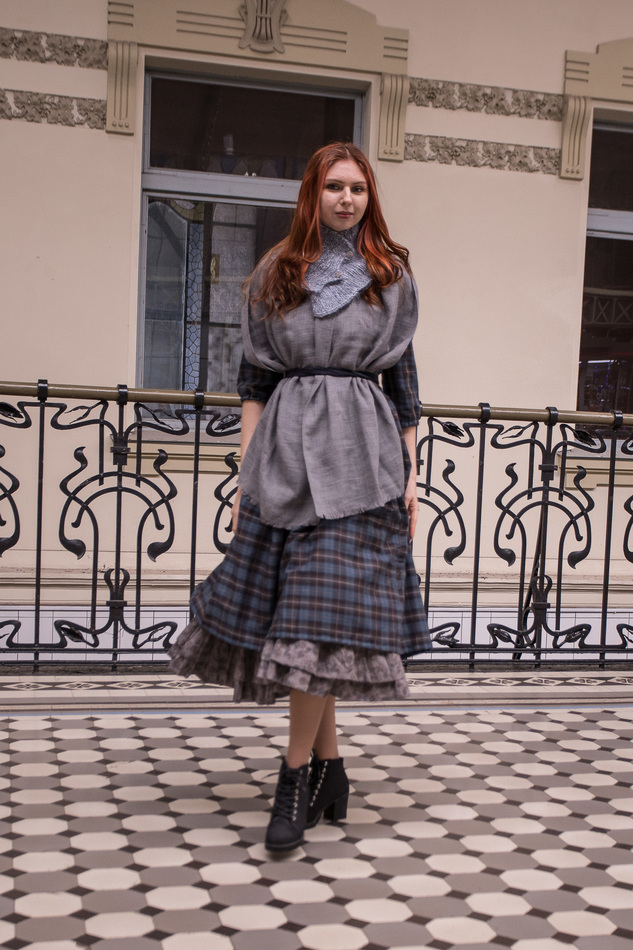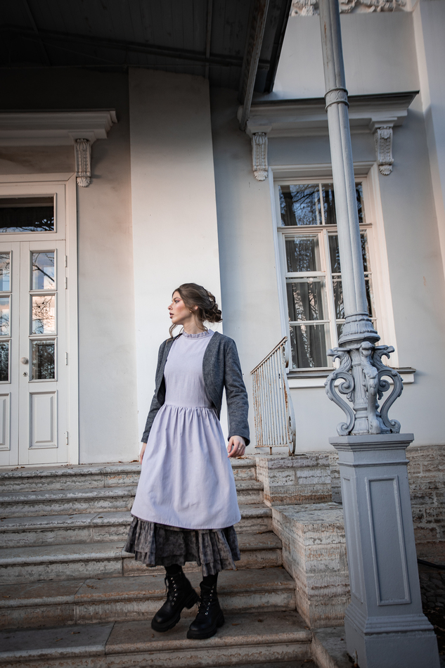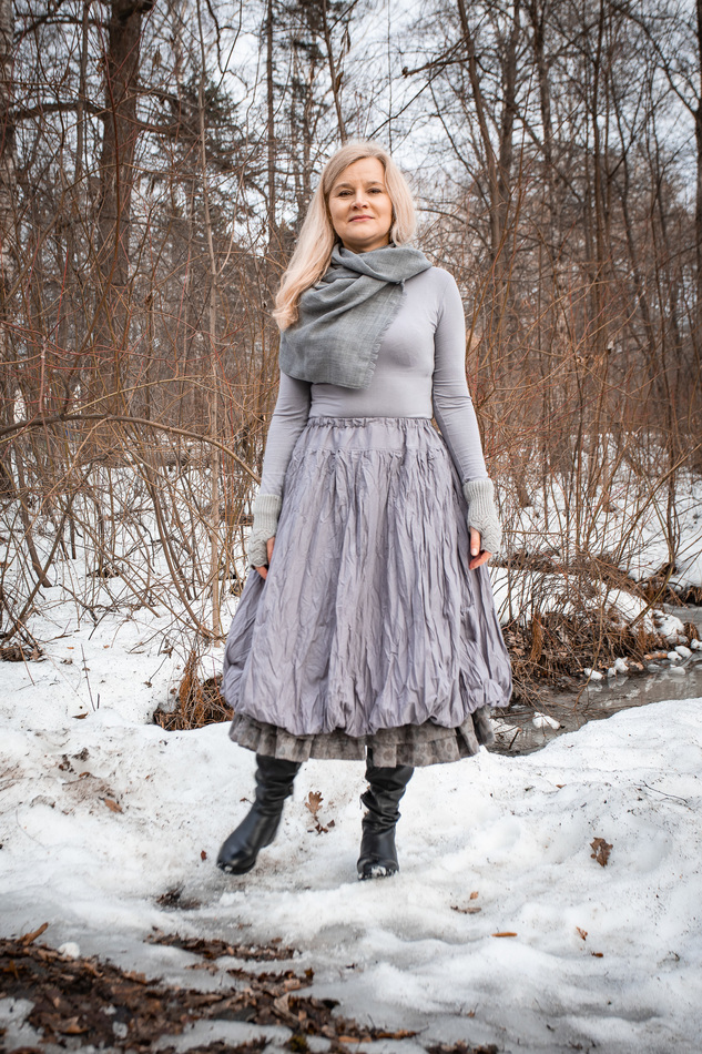 Нижняя юбка из тонкого итальянского батиста пестро-серых тонов. Верх на резинке, по подолу многослойные многоярусные оборки. Придает пышность верхним юбкам и платьям.