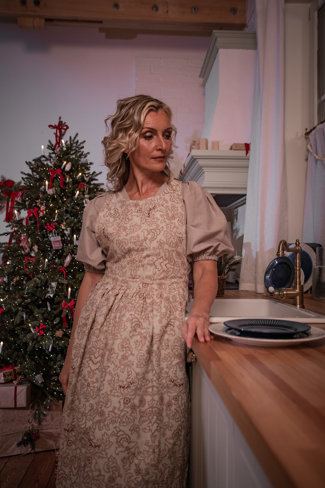 Оригинальный фартук или сарафан, 2 в 1, натуральный небеленый лен с тонким рисунком-орнаментом красного цвета, вырез лодочкой, нижний слой завязывается спереди, на нем верхний с поясом назад, регулируется поясами и имеет универсальный размер - отлично в подарок. Можно сделать на заказ в любом цвете. Есть из такого же материала детский, есть подобного кроя серый с кружевом -см. сопутствующие товары.