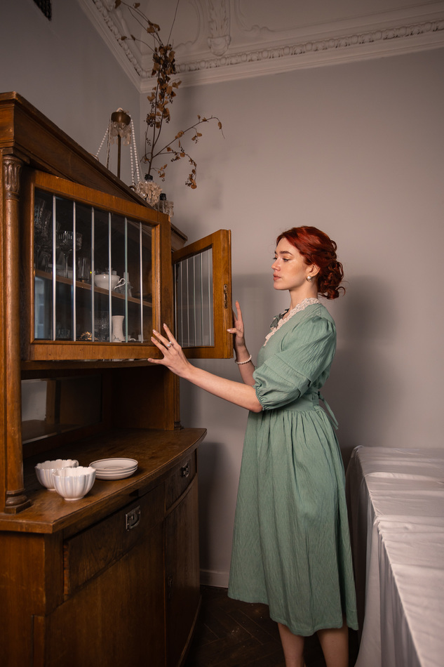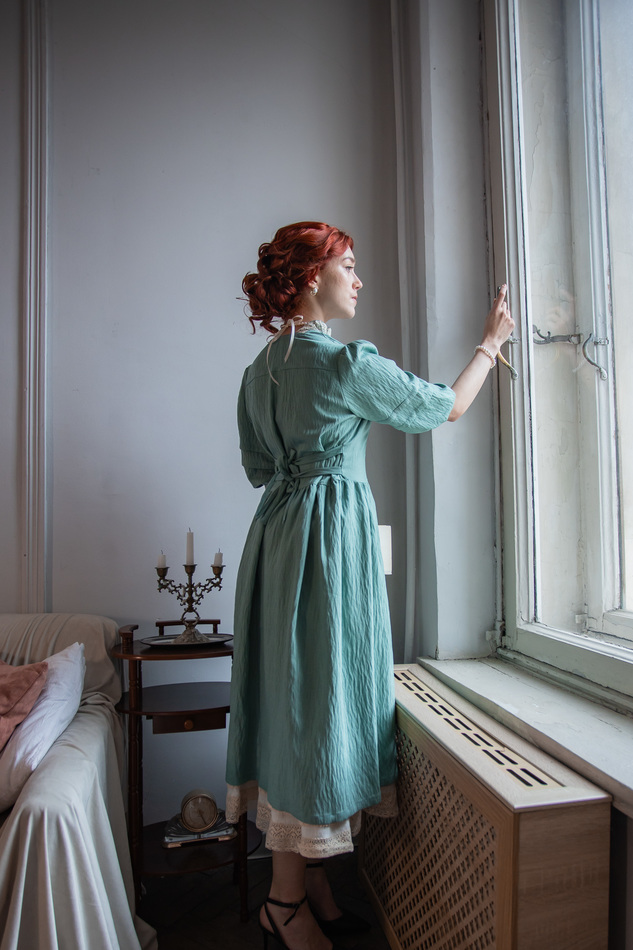 предыдущем посте. Пышные рукавчики. Талия регулируется поясом, на обхват