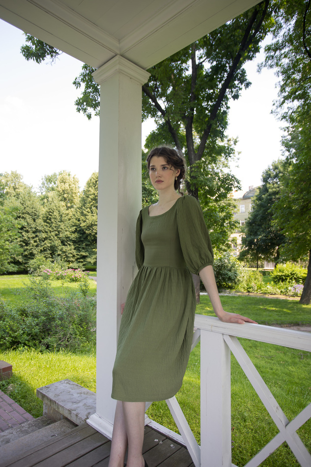 Платье из фактурной крэш-вискозы травянисто-зеленое